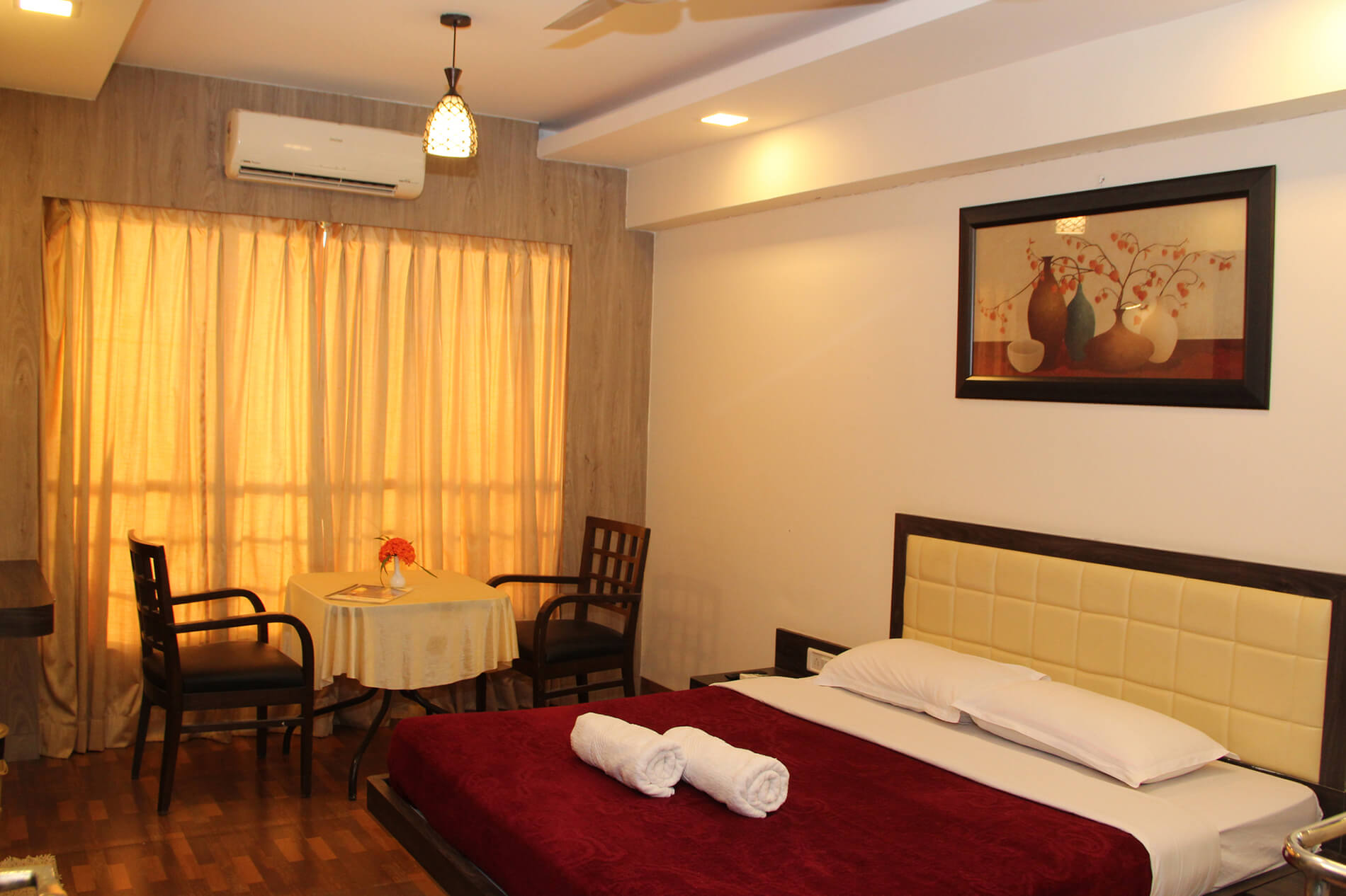 Sunset room is available with a king-size bed or twin beds. The deluxe rooms offer a comfortable stay with its seating arrangement. All of our deluxe rooms offer a view of the ever green forest. All the deluxe rooms are air conditioned and are equipped with LCD television, safety locker